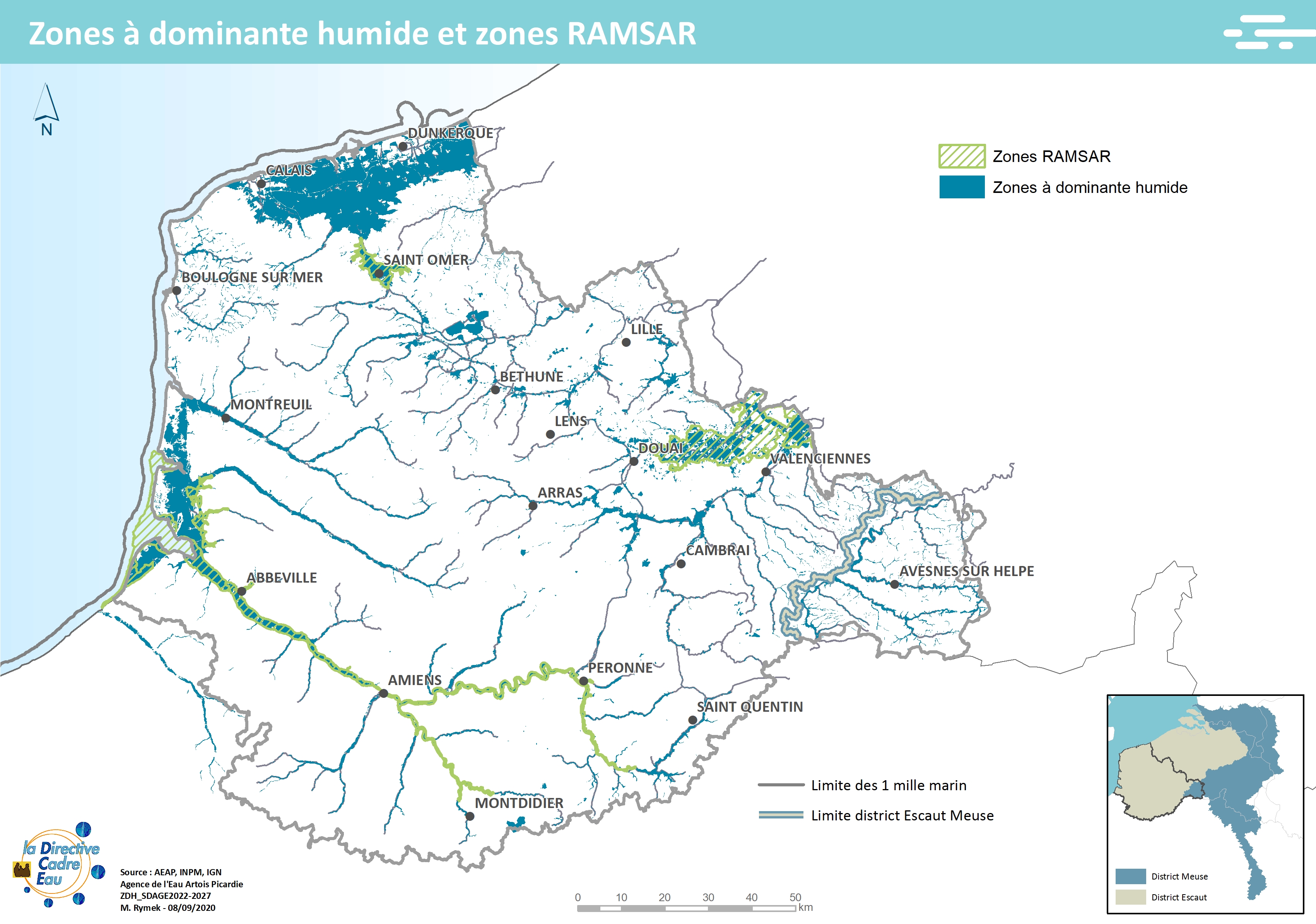 Cette carte issue du SDAGE 2022-2027 présente les zones à dominante humide et zones RAMSAR.